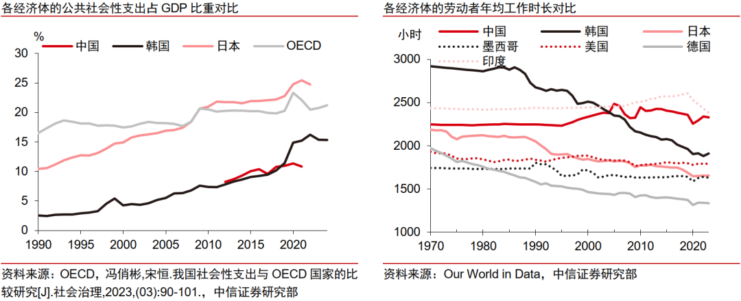 ▍在需求侧,韩国政府普及了社会保障安全网,缩短了劳动者的标准工作时长。